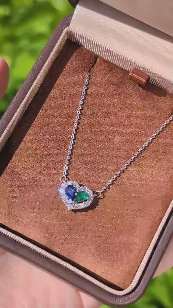 Ready to Ship 18k White Gold Sapphire and Emerald Necklace