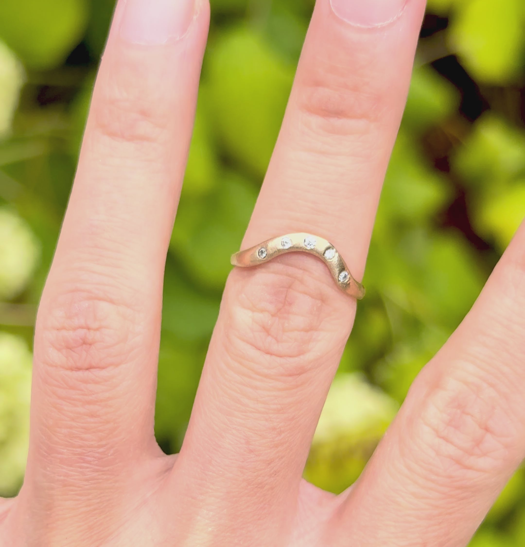 14k Gold Diamond Curved Wedding Ring, Wedding stacking ring, Matching band