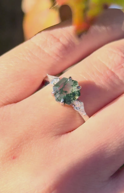 14k Gold Hexagon Moss agate ring, Engagement ring, Moss agate Ring