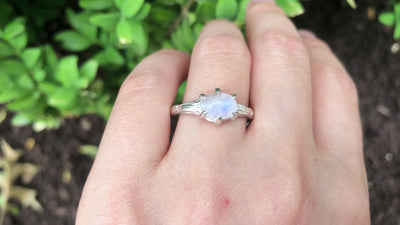 14k Gold Raw Moonstone Engagement ring, Solitary Engagement Ring