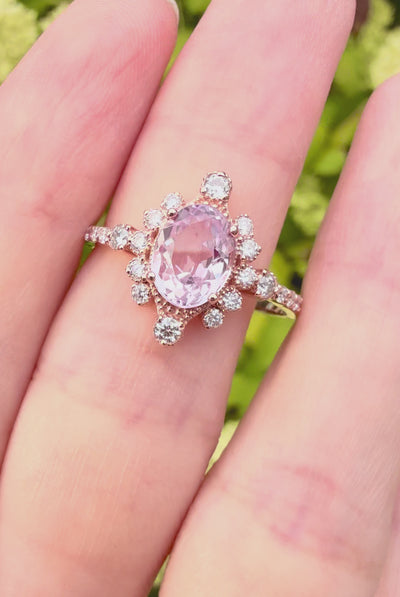 Champagne Lily Rose quartz Ring, 14k Gold Engagement Ring