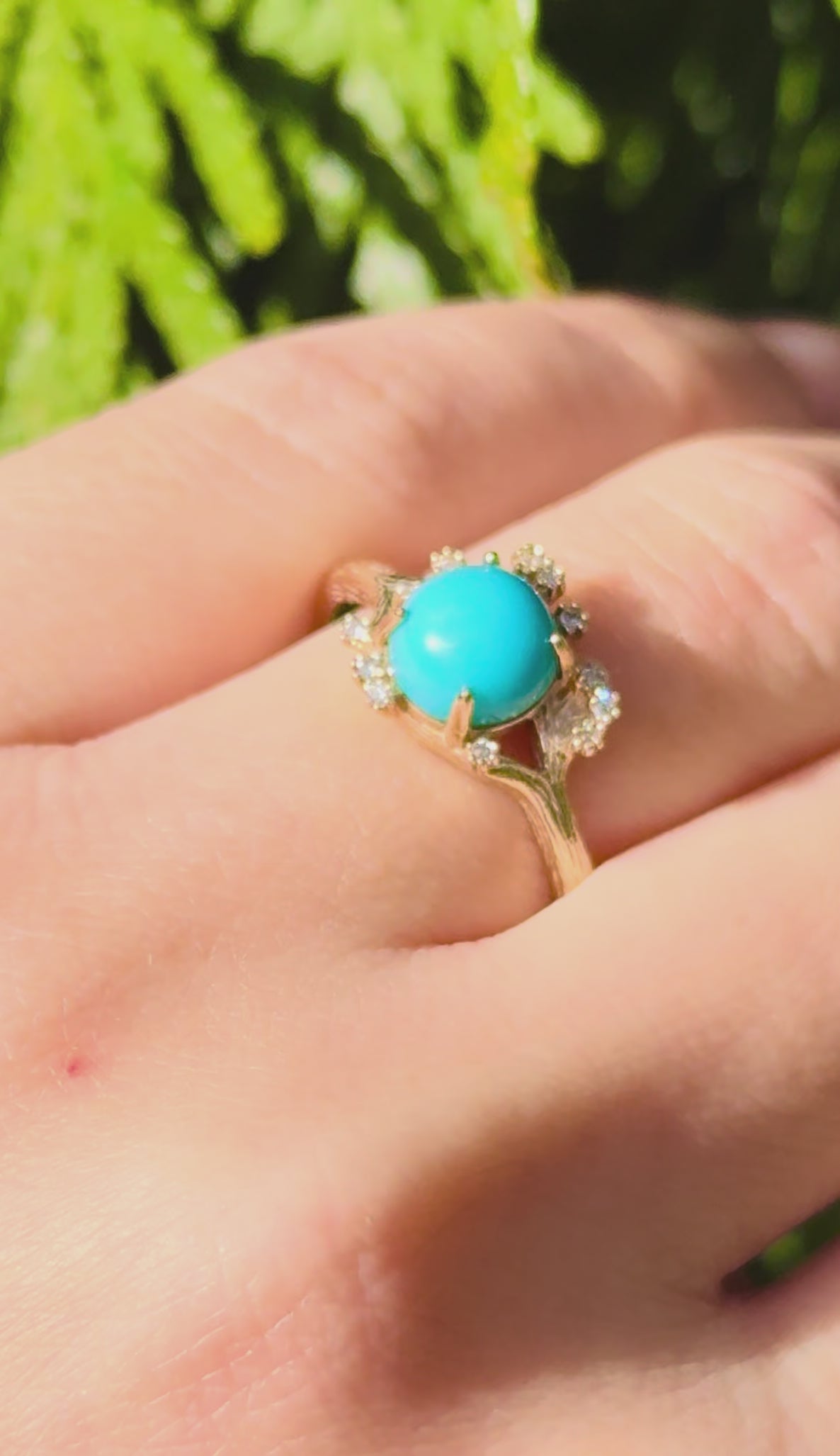 The Oculus 14k Gold Turquoise Engagement ring, Natural Turquoise Engagement ring, Floral Wedding Ring, Statement ring