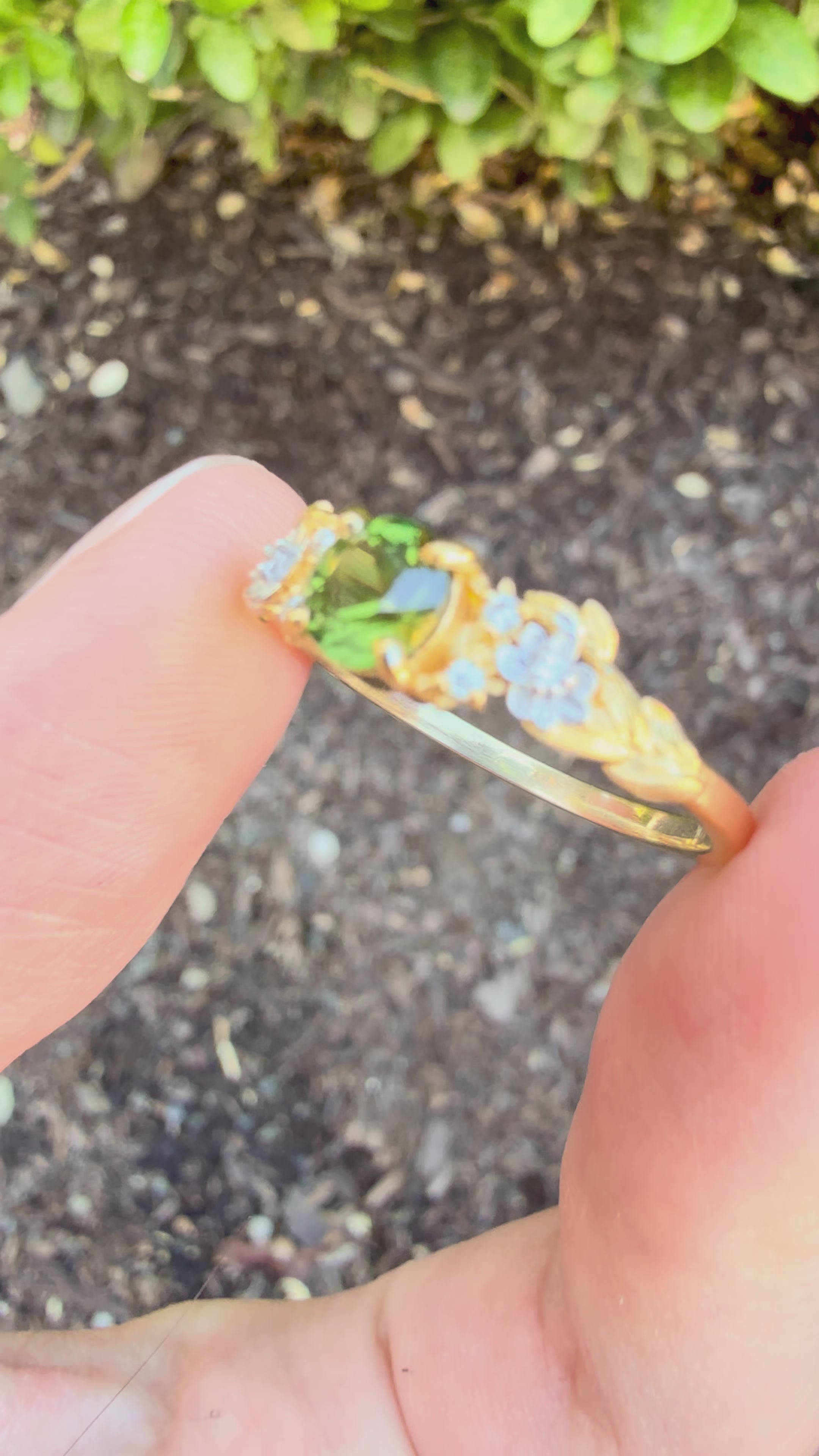 Yellow Gold Green Sapphire ring, Rare Green Blue Sapphire Engagement ring